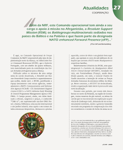 Conjuntas da NATO responsável pela área de im- pado, que apoiam os cerca de mil militares de 29