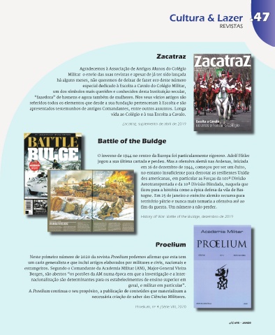 um cariz generalista e que inclui artigos elaborados por militares e civis, nacionais e