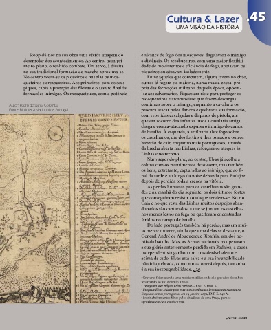 desenrolar dos acontecimentos. Ao centro, num pri- à distância. Os arcabuzeiros, com uma maior flexibili-